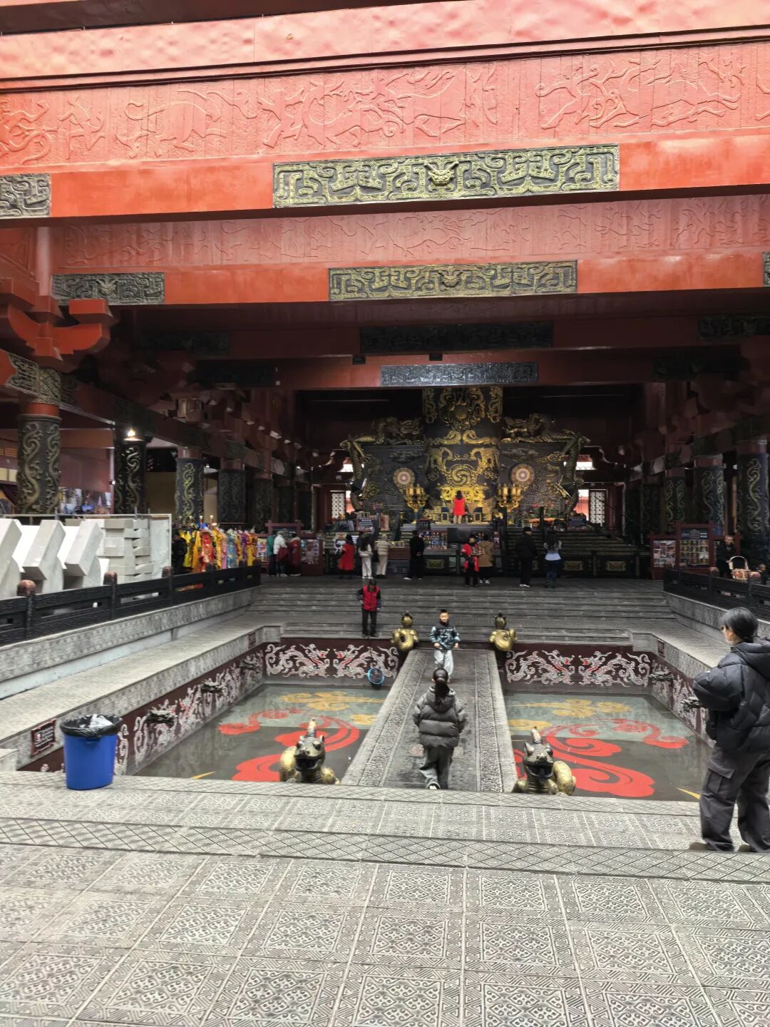 进门之后,是一条中轴大道,串着几道城门。最后,爬上九九台阶,进入四海归一大殿。这就是秦王上朝的地方,大殿中间一个龙椅,有不少“皇帝”在拍照。