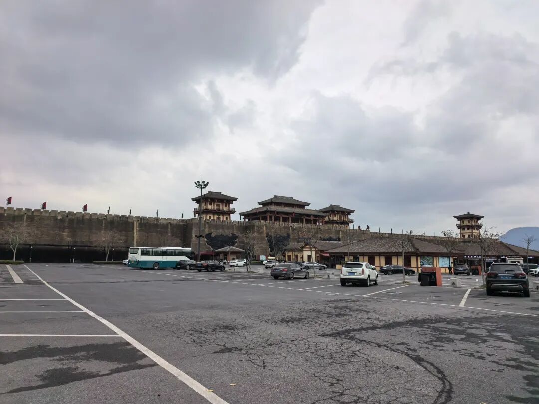 后面去“秦王宫”。秦王宫很有气势,高大的城墙和城门,老远就看到了。