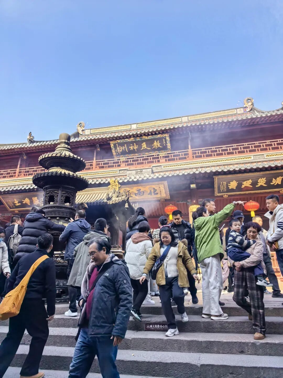 深山孤岛藏古寺,古寺却人潮鼎沸,烧香祈福的香客站满了院子每个角落。有的香客还请了专门指导烧香的导游,导游指点着哪些祈福主题到哪座殿,还一句一句的指导香客如何念对应的祈福语。