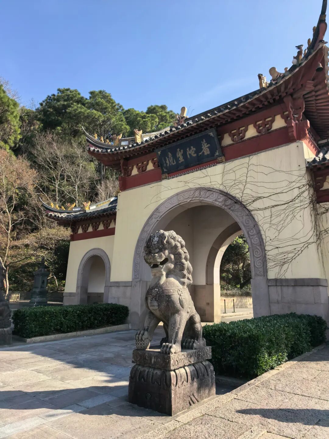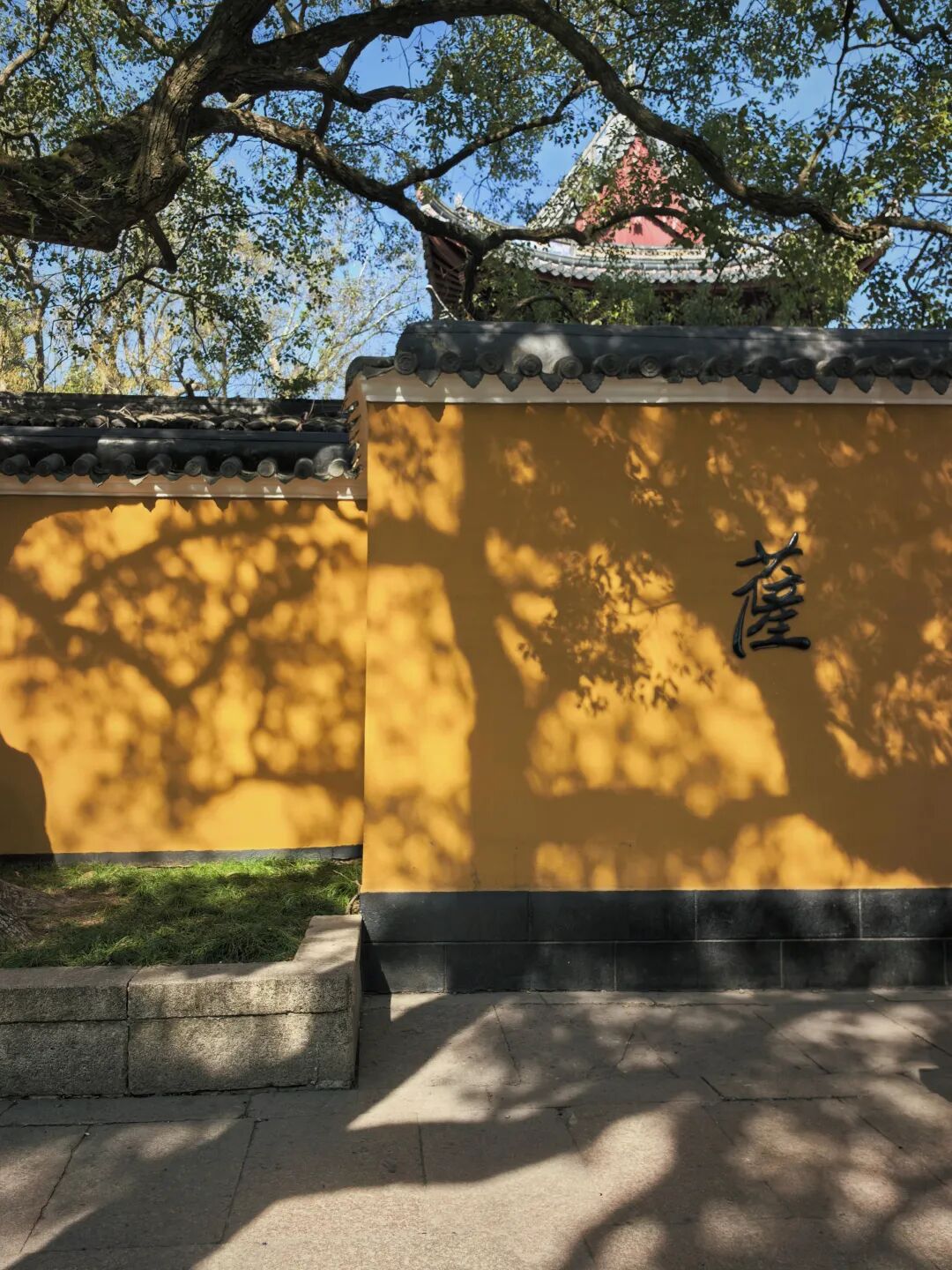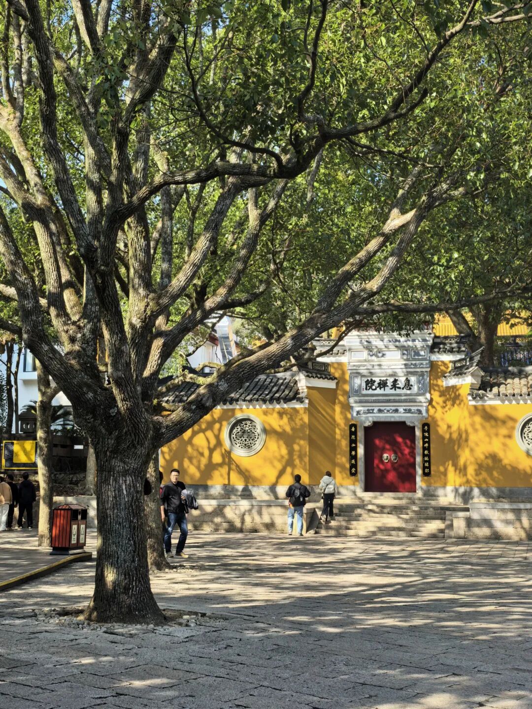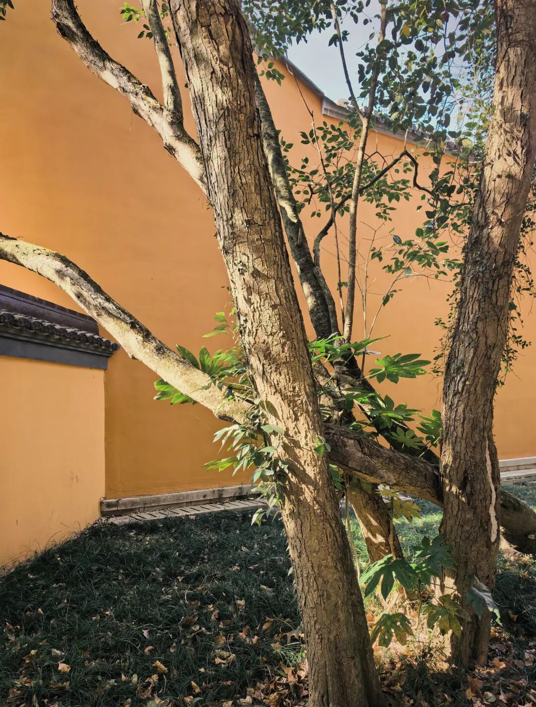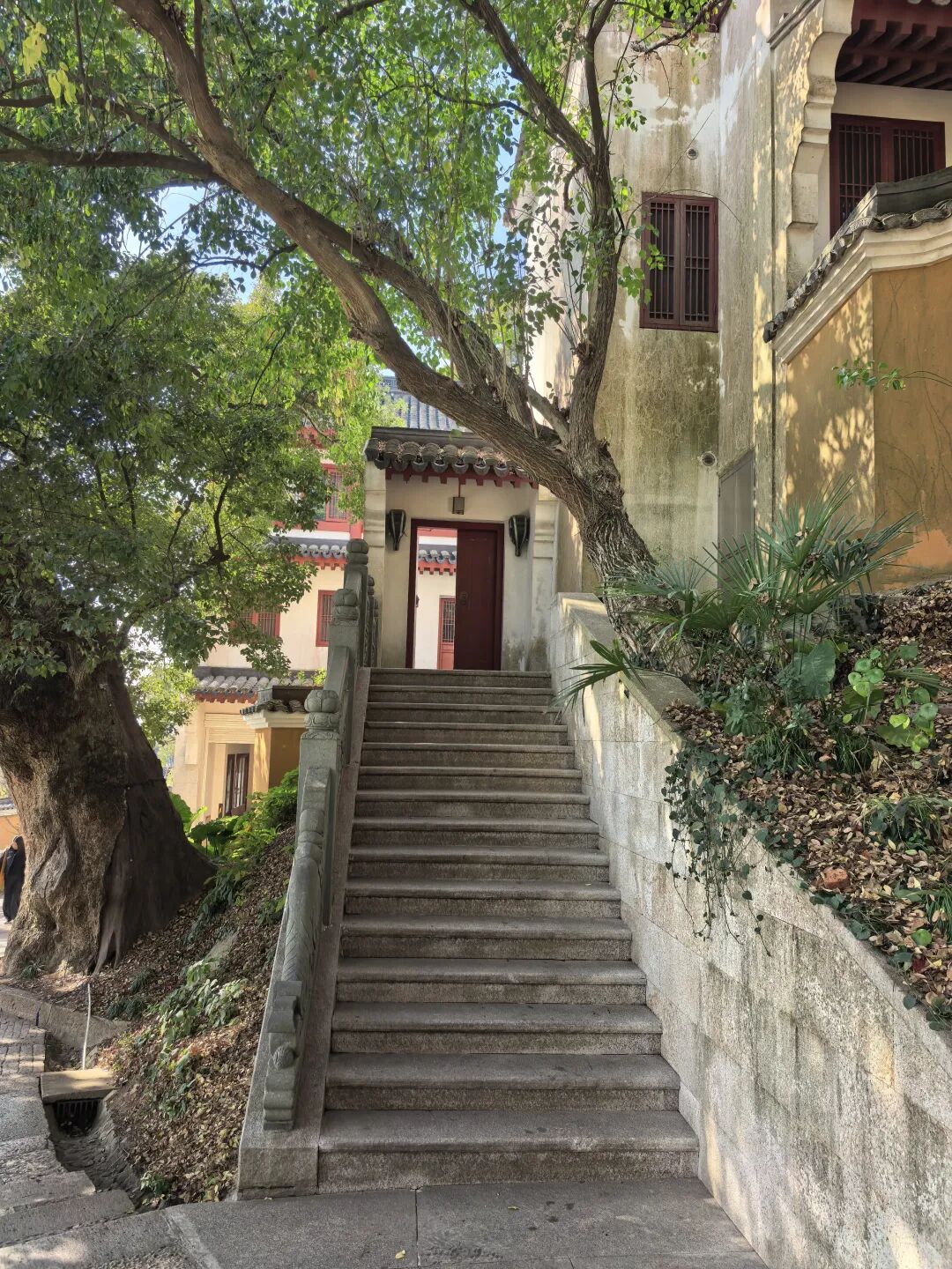 山上的路最近,我们选择走山路。山不高,基本没有几个台阶,不累。沿途还有一些寺院。黄墙绿树,曲径通幽。