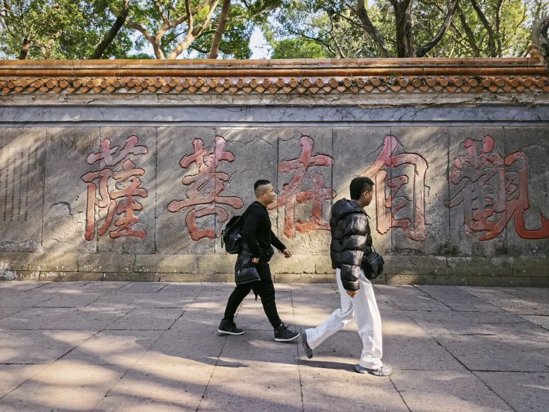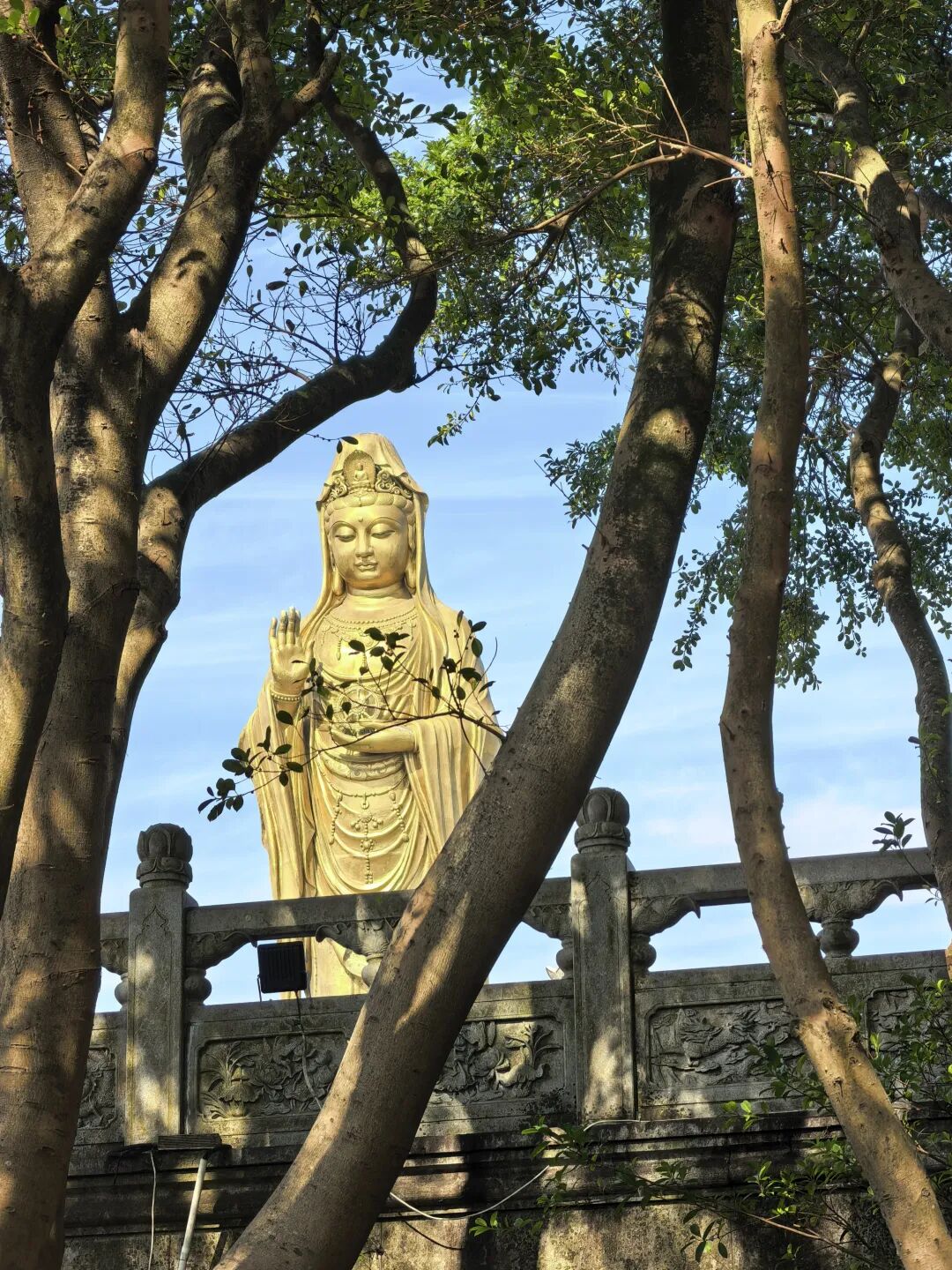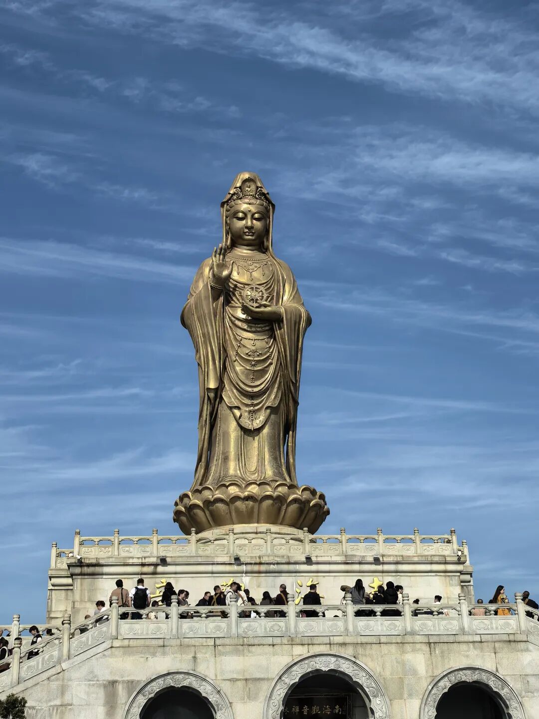 在普济寺参拜完,接着去南海观音,走过去差不多1200米,也不算远。不想走的话,有摆渡车,就是等车的人很多。