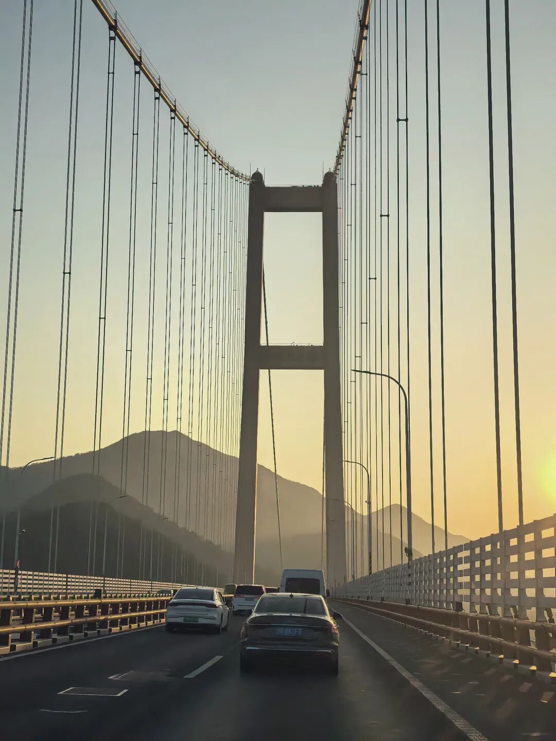 吃完饭返程回去,从跨海大桥经过,欣赏了美丽的大桥落日。