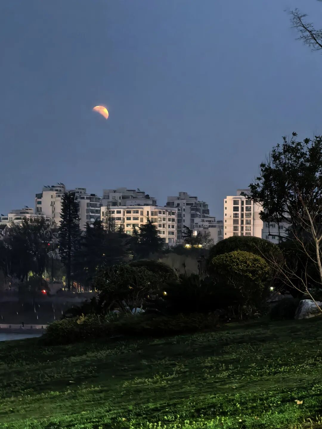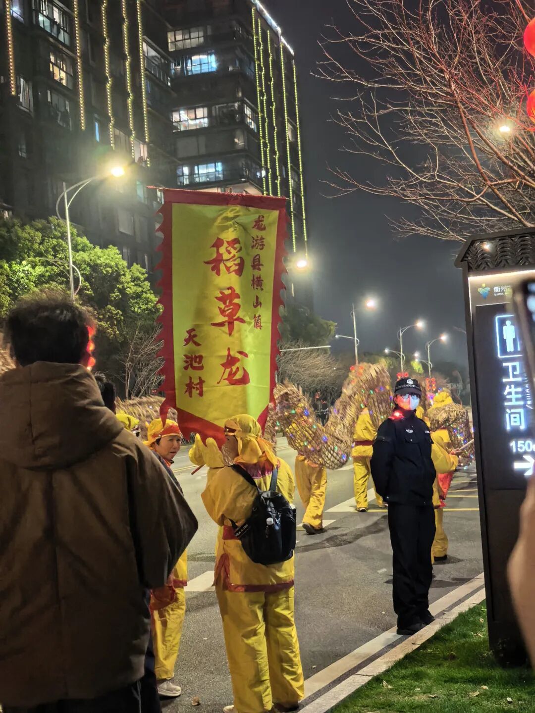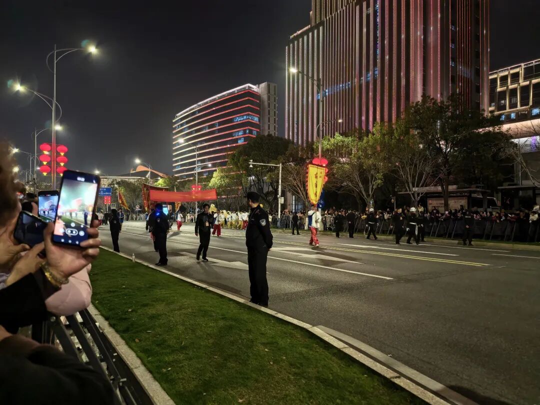 活动元宵节晚上六点半在鹿鸣大草原开启,接着巡游。路线全部在衢州古城文化旅游区:鹿鸣大草原→诗词公园→上下街沿线。有人说是十八只舞龙队,也有人说是九支,活动看完我数的是八只。舞龙队都是衢州市下属区县、乡镇的一些特色舞龙队。今天下班,六点过一点,我就出发去诗词公园。表演路线的路已经封闭,人很多,都在往观看路线聚集。但是秩序井然,不愧是南孔圣地。今晚正月十五,刚好也是月全食。月亮升起不久,已经被食得只露出一个角。过一会云多了,完全把月亮遮住,没机会欣赏全部月全食了。