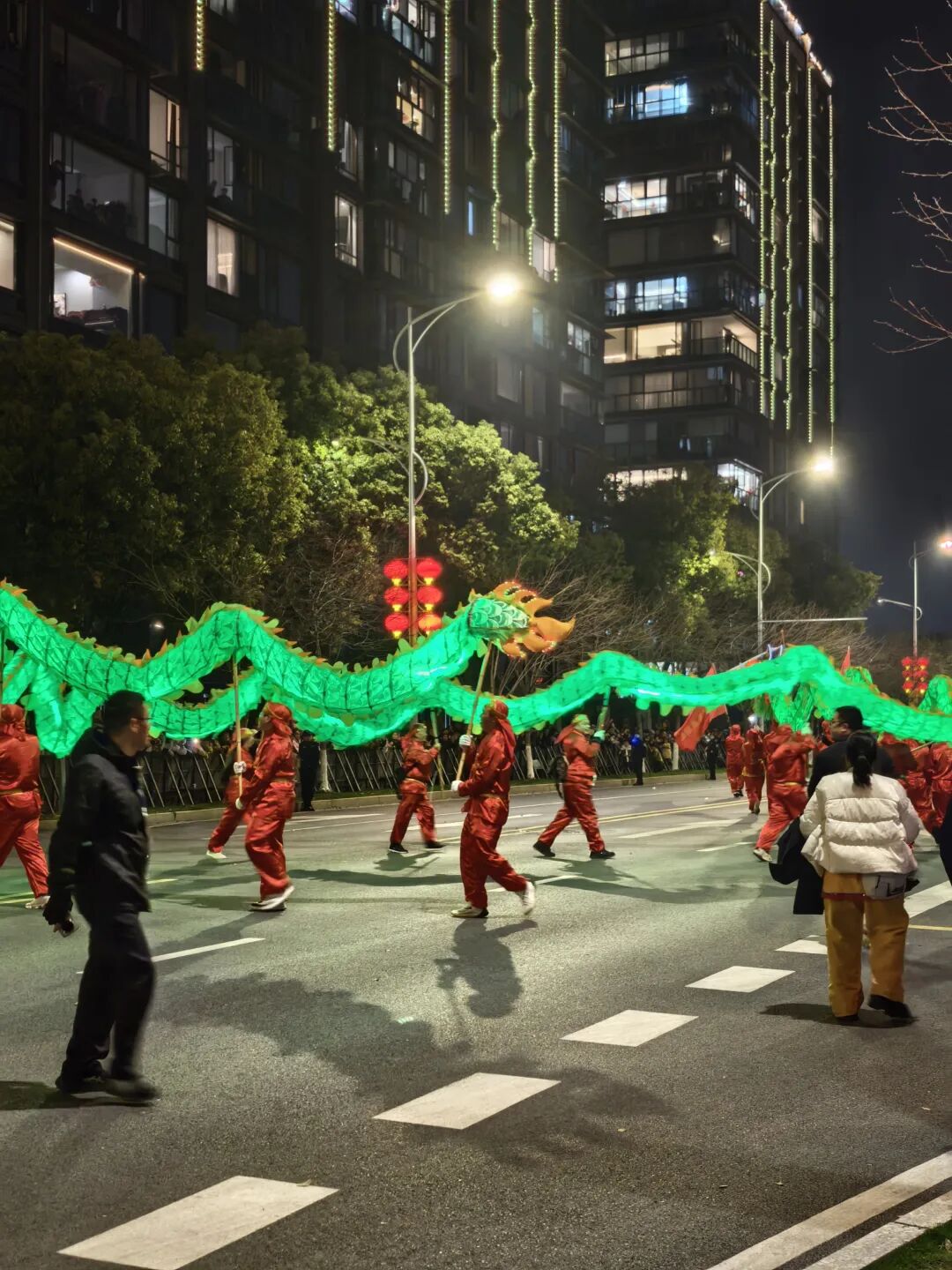 第五条龙,还是一条青龙,不过舞龙人穿的是红色的衣服。
