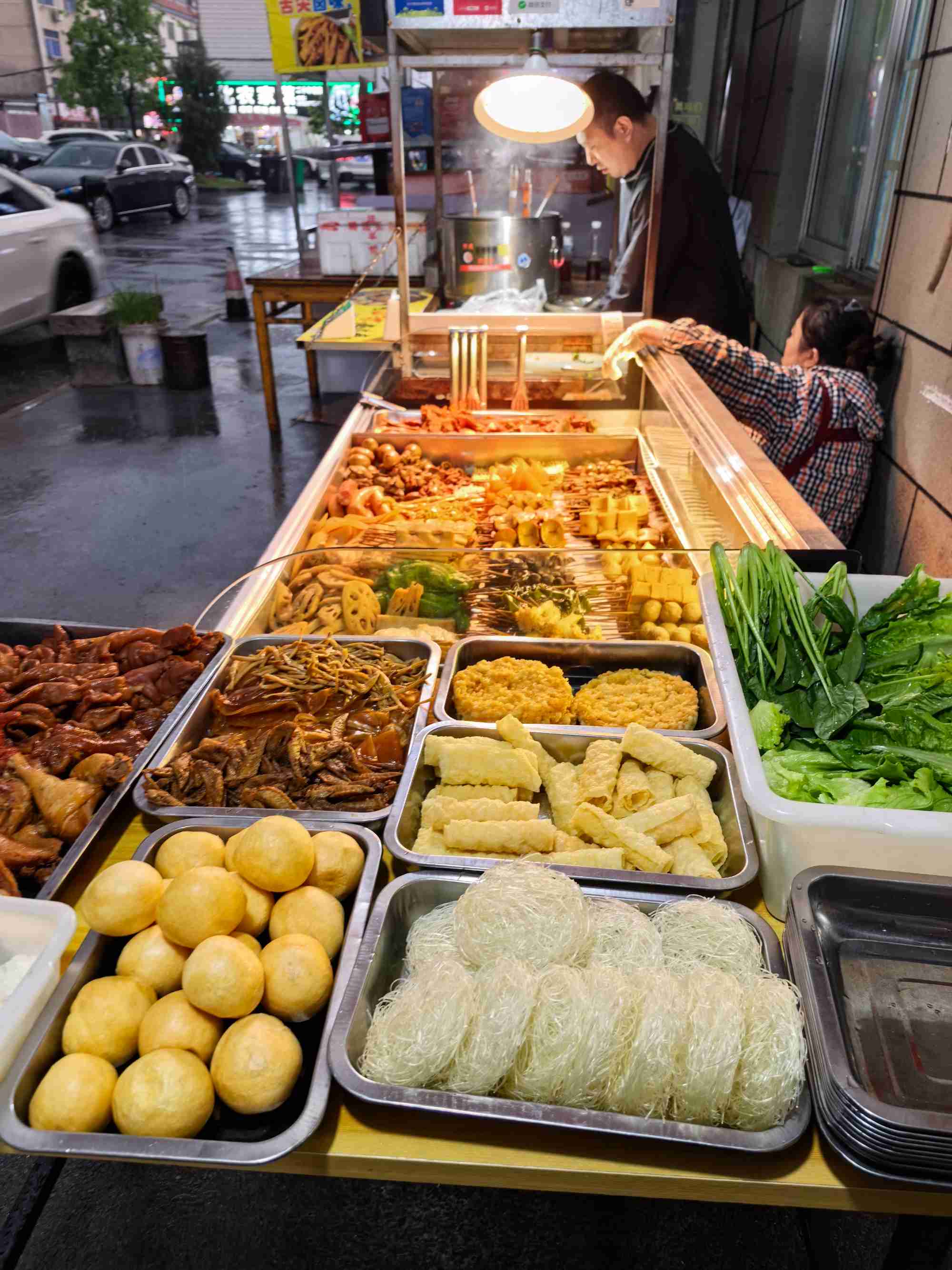 晚上依然下雨,肚子又饿了,心理防线测地崩溃,又到卤菜店,买了三十块钱的卤菜。